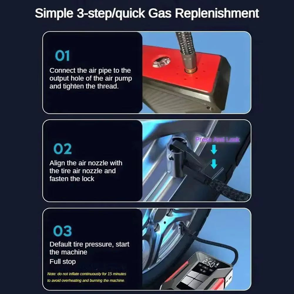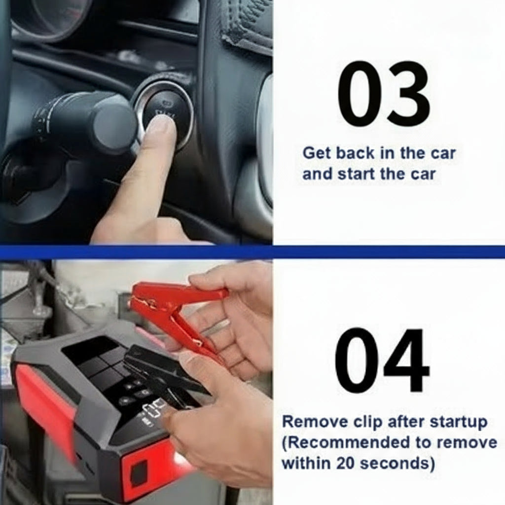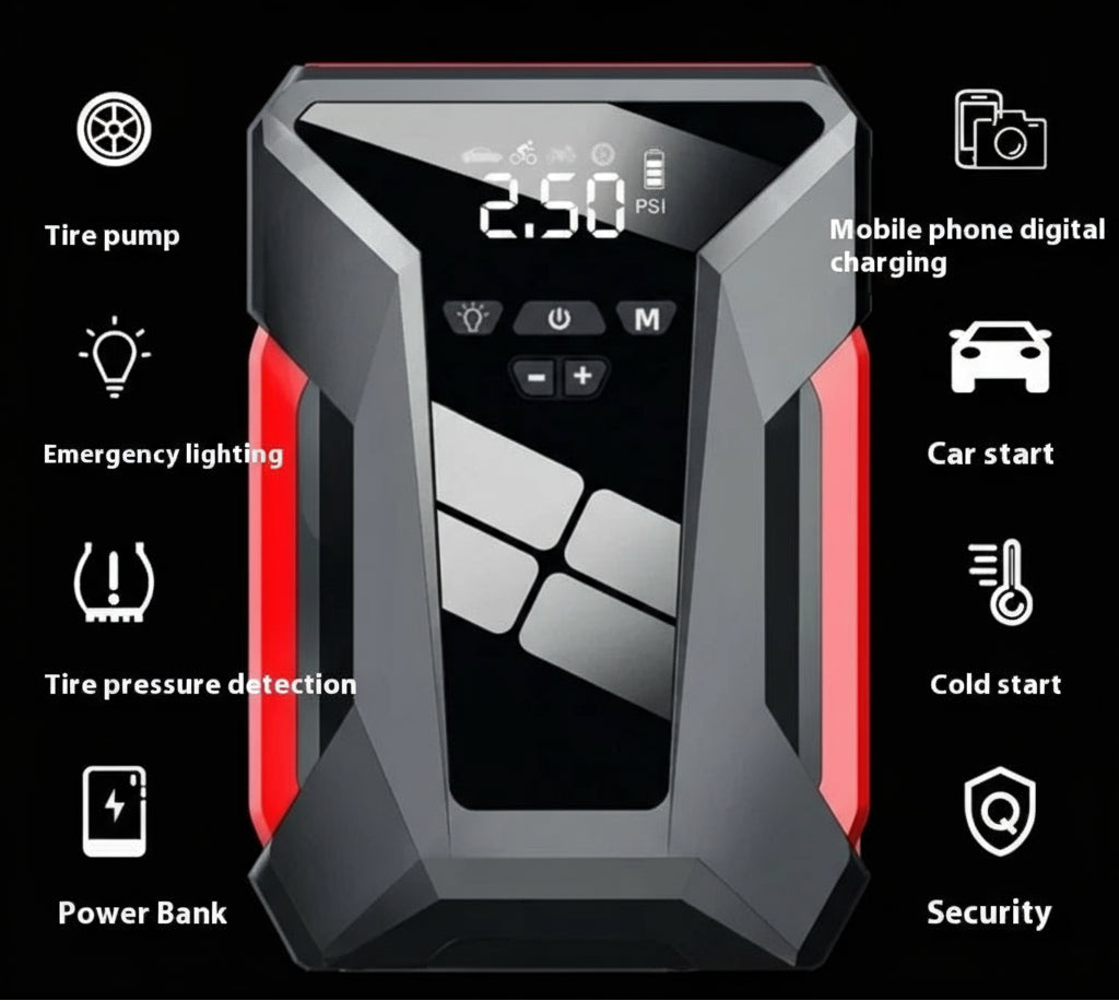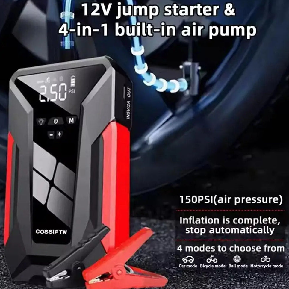 Get Moving Quickly with Our Powerful Jump Starter & Portable Air Pump Combo - A Must-Have for Every Car Owner.