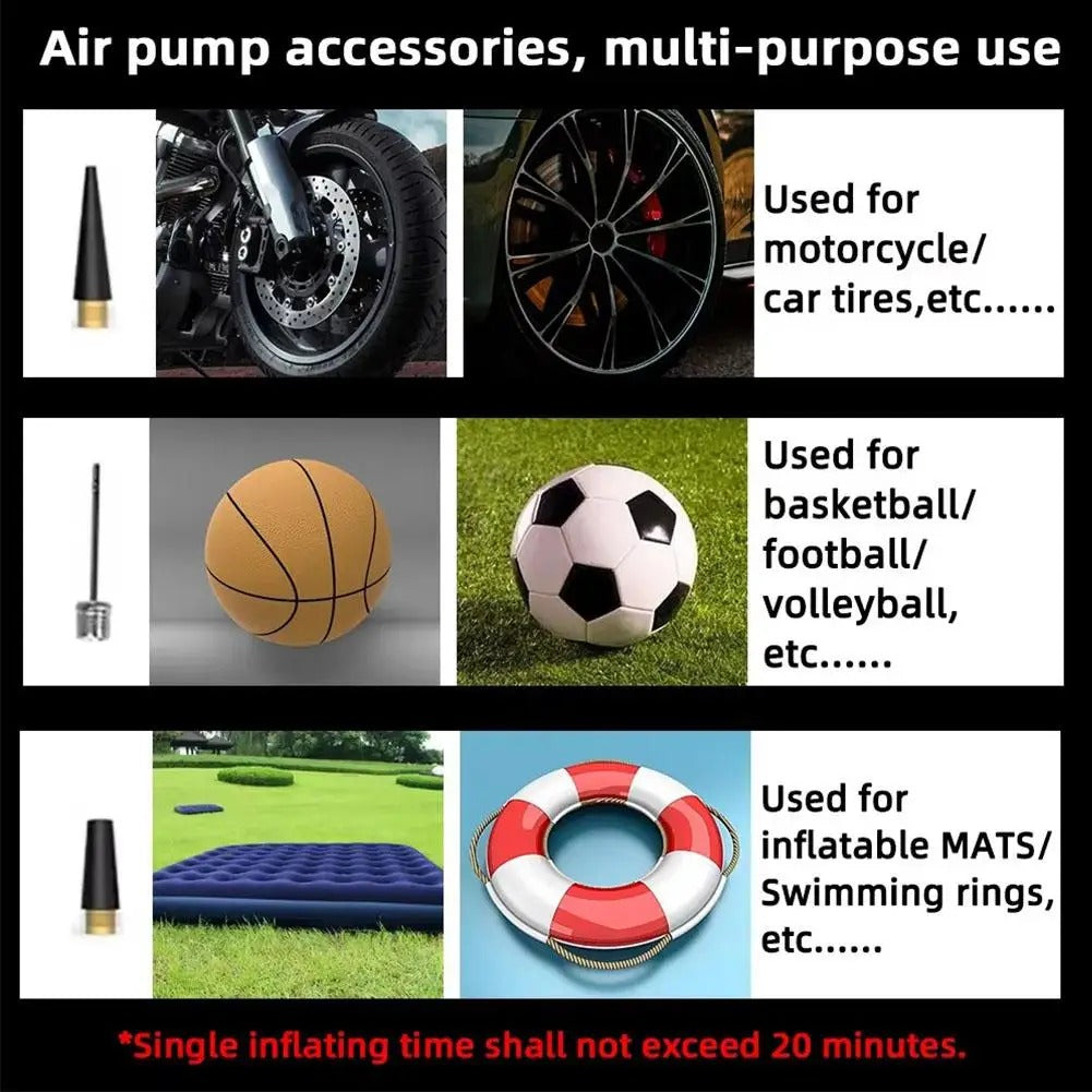 Get maximum utility! This portable pump isn't limited to your car or motorcycle. It comes with specialized nozzles for bicycles, sports balls (football, basketball, etc.), and all your inflatables (air mattresses, swimming rings). Power, versatility, and convenience in one small kit. The one pump you'll use all year.